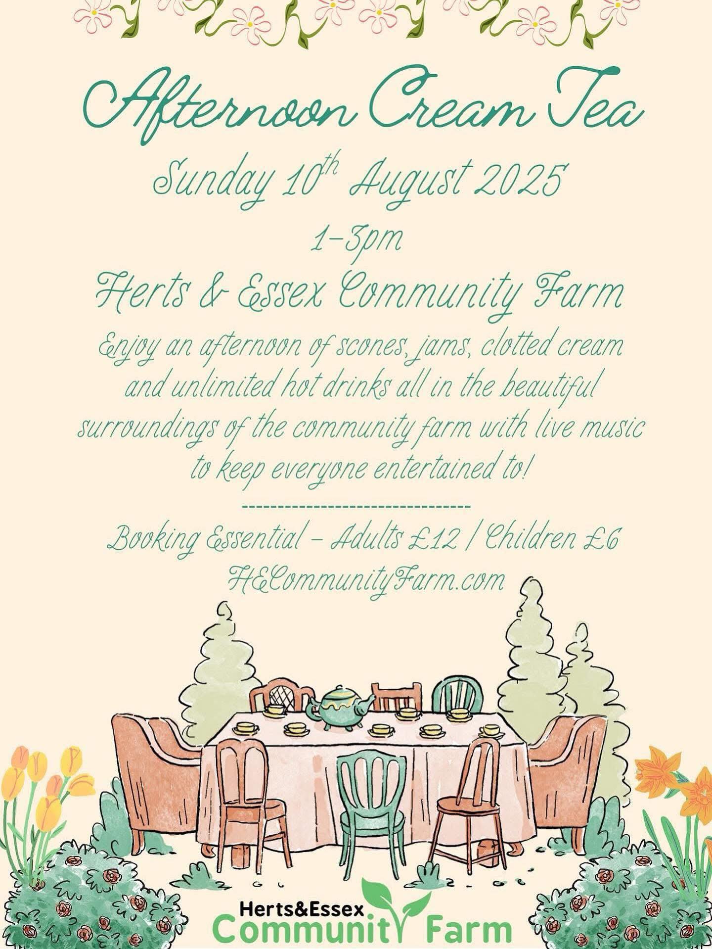Herts & Essex Community Farm presents Afternoon Cream Tea! Enjoy an afternoon of scones, jams, clotted cream and unlimited hot drinks all in the beautiful surroundings of the community farm with live music to keep everyone entertained to!