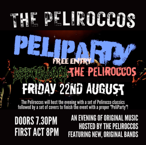 This event is called “Peliparty”, The Peliroccos are the host band, they do a set of their stuff then….they’ll have a “featured artist”, this will be an original band from our local area. We need somewhere for original bands to play their stuff! Then The Peliroccos will finish the night with a covers set for everyone to have a proper knees up to!