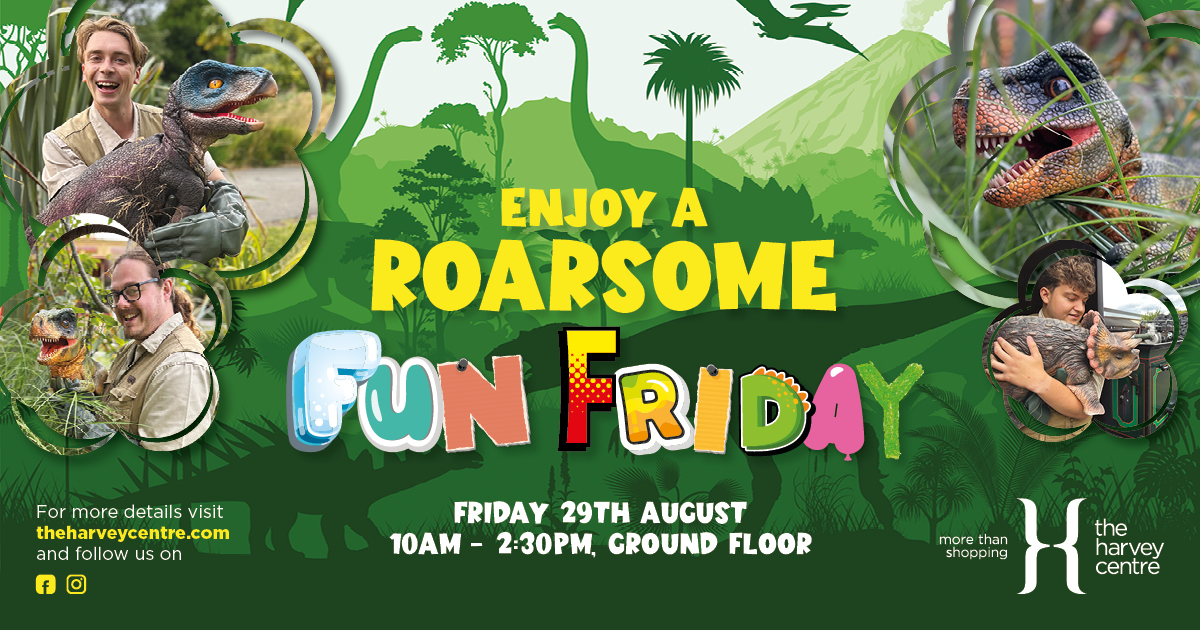 Join us on Friday 29th August, 10am–2:30pm for a DINO-MITE adventure at The Harvey Centre!